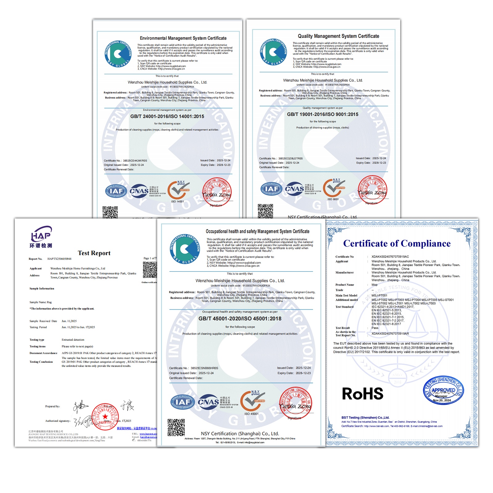 Wir verfügen über eine umfassende Palette an Zertifizierungen, darunter CE, ISO 9001, ISO 14001, ISO 45001, RoHS und REACH, um sicherzustellen, dass unsere Produkte den höchsten internationalen Standards für Qualität, Sicherheit und Umweltschutz entsprechen.