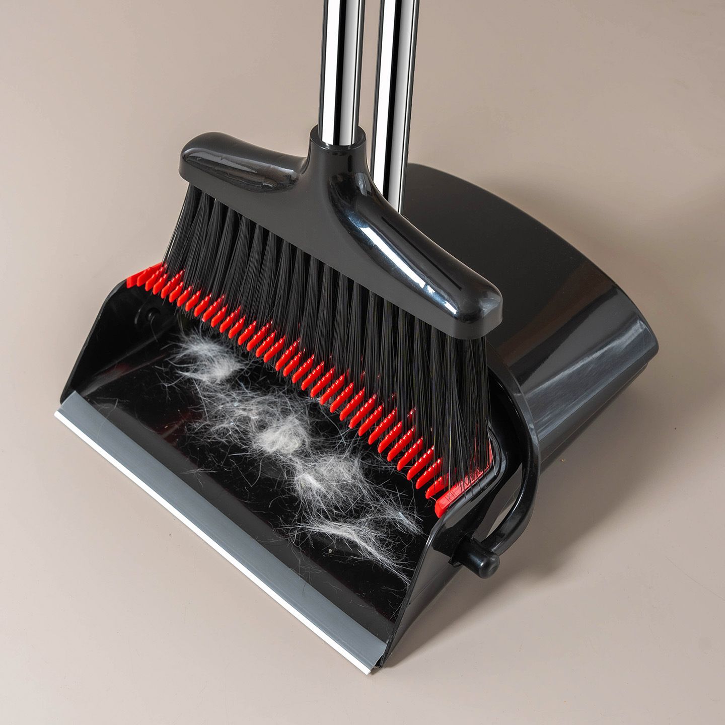 Kein Bücken beim Aufräumen: Besen und Kehrschaufel. Die verstellbaren Griffe bieten je nach Bedarf Platz für bequemes Kehren, ohne dass Sie sich bücken müssen. Robuste Konstruktion und rostfreies Material. Upgrade der robusten Besenborsten: Das Kombinationsset aus Besen und Kehrschaufel besteht aus hochwertigen/weichen und robusten Borsten, die effektiv Staub und Schmutz auffangen können. Der Kopf eines Lobbybesens in voller Größe und die Kehrschaufel mit großem Fassungsvermögen eignen sich perfekt zum Kehren großer Flächen Besen und Kehrschaufel sind leichter zu reinigen. Einfache Aufbewahrung im Stehen: Die Clip-Funktion macht den Besen und die Kehrschaufel aufrecht zu einem absolut sicheren Platz! Durch die kompakte Aufbewahrung bleibt Ihr Zuhause oder Ihr Arbeitsplatz sauber und ordentlich. Funktioniert perfekt für mehrere Oberflächen und ist für den Innenbereich geeignet. Steifere Borsten und gummierte Kanten an der verlängerten Kehrschaufel verhindern wirksam, dass Staub abrutscht. Handbesen eignen sich hervorragend für Fliesenoberflächen und bieten eine hervorragende Reinigungsleistung. Ein feiner gezahnter Kamm hilft dabei, kleinere Rückstände aufzufangen und Tierhaare von Böden und Tischen zu entfernen, wodurch der Reinigungsprozess effizienter wird