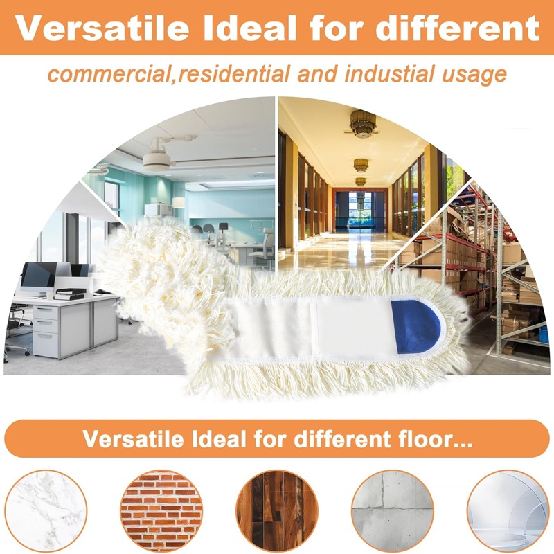 HOCHWERTIGE REINIGUNG: Diese Nachfüllung für den Bodenwischkopf besteht aus hochwertigem, natürlichem Baumwollgarn und gewährleistet ein hervorragendes Reinigungserlebnis auf allen Oberflächen – einschließlich Hartholzböden – für Industrie-, Gewerbe- und Wohnumgebungen. Begrüßen Sie makellose, glänzende Böden!